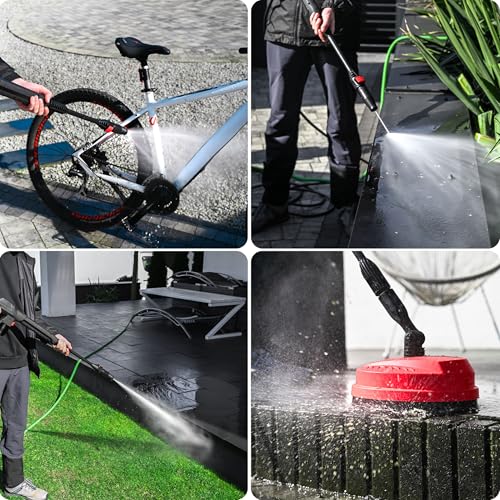 | Features | 🚗【Leistungsstarker kabelloser Hochdruckreiniger】: Die akku-hochdruckreiniger ist mit 2 x 4,0 Ah Li-Ionen Akku, 3 Gänge geschwindigkeitsverstellbar, tragbare Aufbewahrungstasche, max. 120 Bar, max. 3.4GPM, 6 -IN-1 Düse, Es ist ein wirklich tragbarer Hochdruckreiniger, mit dem Sie alle Ihre Außenbereiche und Geräte einfach und schnell reinigen können., 🚗【6-in-1-Multifunktionsdüse】:Hochdruckreiniger Mit 6-in-1-Düse und 180° verstellbarer Düse. Es eignet sich hervorragend zum Bewässern von Pflanzen, zum Reinigen von Fahrzeugen, Gartengeräten, Fahrrädern, Booten, Fenstern, Böden, Bädern, Schwimmbädern, Türen, Zäunen und Ecken, die schwer manuell zu reinigen sind. Der Hochdruckreiniger ist mit einem Schaumtopf zum schnellen Aufschäumen ausgestattet, der sich leicht zum Reinigen von Autos und zum Reinigen von Flecken wie Fenstern und Türen eignet., 🚗【3 Gänge einstellbar】: Der 1. Niederdruckmodus eignet sich zum Reinigen von Haushaltsglas, der 2. Mitteldruckmodus eignet sich für großflächige Böden und der 3. Hochdruckmodus eignet sich zum Reinigen von Graten und Flecken.Präzise Steuerung der Geschwindigkeit und des Drucks des Wasserflusses, ein nützliches Reinigungswerkzeug zum Waschen von Lebensmitteln und zum Reinigen des Hauses, ein guter Helfer zum Bewässern von Pflanzen und zum Reinigen im Freien!, 🚗【Akku mit hoher Kapazität】Der Kabelloser Druckreiniger ist mit 2×3,0Ah Lithium batterien mit großer Kapazität ausgestattet, die lang anhaltende Leistung und zuverlässige Leistung bieten.1 x Ladegerät, Schnellladung 2-3 Stunden. Nach dem vollständigen Aufladen kann es 30–40 Minuten lang arbeiten. Bietet einen leistungsstarken Bürstenloser Motor. Max. 3.4GPM / 120 Bar Hochdruck, maximale Sprühentfernung von 12 Metern., 🚗【Sorgenfreier Kauf】Wenn Sie Fragen zum tragbaren Hochdruckreiniger von wowspeed haben, kontaktieren Sie uns bitte und wir werden Ihnen eine zufriedenstellende Lösung bieten. (Packungsinhalt: 1x Hochdruckreiniger, 2x Batterien, 1x Wasserrohr (5M), 1x Düse, 1x Schnellanschluss, 1x Flaschenschnellstecker, 1x Ständer, 1x Schaumsprühflasche, 1x Filter, x Verpackungsbox aus Kunststoff, 1x Bedienungsanleitung ) |