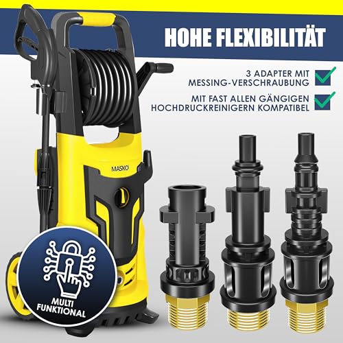 Ein großer Vorteil des MASKO® Rohrreinigungsschlauch Sets ist seine Kompatibilität mit einer Vielzahl von Hochdruckreinigern, insbesondere denen der Marke Kärcher sowie LAVOR. Die mitgelieferten Adapter sorgen dafür, dass der Schlauch einfach und sicher an die Reinigungsgeräte angeschlossen werden kann.