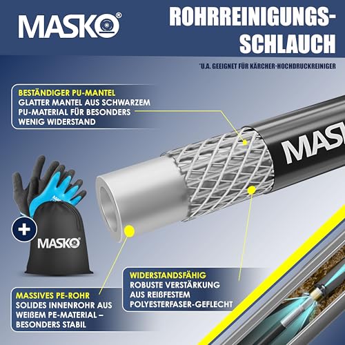 Abschließend lässt sich sagen, dass das MASKO® Rohrreinigungsschlauch Set eine ausgezeichnete Wahl für alle darstellt, die eine leistungsstarke und vielseitige Lösung zur Beseitigung von Rohrverstopfungen suchen. Die hohe Druckleistung und die Kompatibilität mit einer Vielzahl von Hochdruckreinigern machen dieses Set gleichermaßen für Heimwerker und professionelle Nutzer attraktiv. Die hochwertige Verarbeitung und die einfache Handhabung sorgen dafür, dass es sich um eine langlebige und zuverlässige Investition handelt.