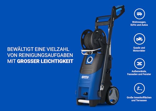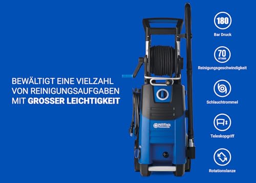 Dank des integrierten Systems zur Reinigungsmitteldosierung ist der Nilfisk Hochdruckreiniger einfach zu bedienen. Zudem sorgen ein Teleskopgriff und ein drehbarer Schlauch für mehr Komfort während der Nutzung.