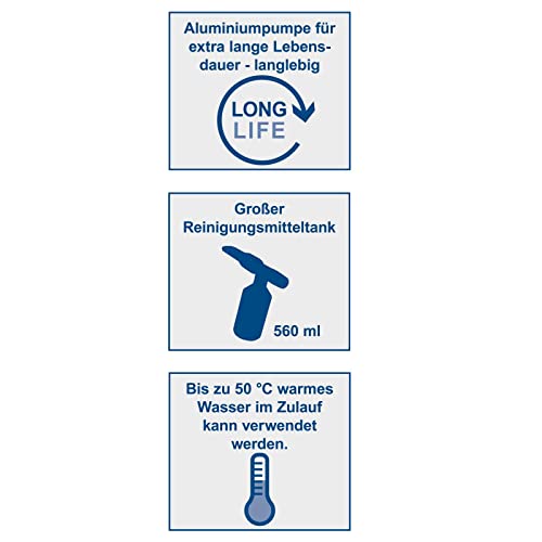 - 5 m langer Schlauch und integrierter Reinigungsmitteltank.
