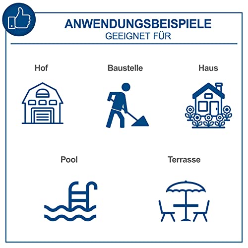 Auch die Fördermenge von 408 l/h zeigt sich im Test als sehr effizient, wodurch große Flächen in kurzer Zeit gereinigt werden können. Dadurch spart man nicht nur Wasser, sondern auch Zeit.