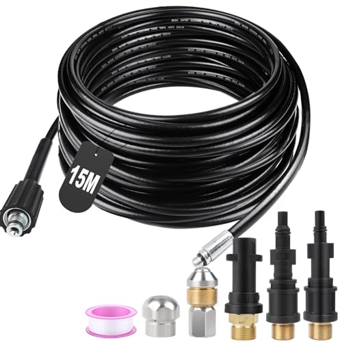 | Features | 【Kraftvolle Reinigung】 Der maximale zulässige Arbeitsdruck des Rohrreinigungsschlauch beträgt 180 bar, die maximale Temperatur erreicht 60 °C. Speziell für die Rohrreinigung entwickelt, hilft er Ihnen dabei, verstopfte oder verschmutzte Rohre, Abflüsse, Rinnen und Toiletten schnell und einfach zu reinigen., 【Starr Strahldüse】 Die Spritzdüse verfügt über eine vorwärts gerichtete Lockerungsdüse, um Verstopfungen zu beseitigen. Drei rückwärts gerichtete Treibdüsen spülen lockere Verunreinigungen aus und treiben gleichzeitig den Rohrreinigungsschlauch im Rohr vorwärts, um automatisch Schmutz zu entfernen., 【Rotationsdüse】 Die Rotationsdüse verfügt über drei rückwärts gerichtete Treibdüsen. Die kraftvolle rotierende Sprühwirkung kann verstopfte Rohre durchdringen, selbst bei schweren Verstopfungen wird eine mühelose Reinigung ermöglicht., 【Robust und langlebig】 Der flexible Rohrreinigungsschlauch ist mit einer Verdrehungsschutzvorrichtung ausgestattet, um Wassersammlungen zu verhindern. Er besteht aus massivem Polyethylen-Innenschlauch, der von einer reißfesten Polyester-Gewebeverstärkung umgeben ist, Ein beständiger und glatter Mantel aus schwarzem PU-Material sorgt für besonders wenig Widerstand. Die Verbindungsstellen sind mit Dichtband abgedichtet, um Leckagen zu verhindern., 【Lieferumfang】 1 x 15M Rohrreinigungsschlauch, 1 x Adapter für Kärcher K2 K3 K4 K5 K6 K7, 1 x Adapter für Lavor, 1 x Adapter für Bosch, 1 x Starr Strahldüse, 1 x Rotationsdüse, 1 x Dichtungsband. Wir legen großen Wert auf die Kundenerfahrung. Bei Fragen kontaktieren Sie uns bitte per E-Mail. Wir bieten Ihnen hochwertigen Service. |